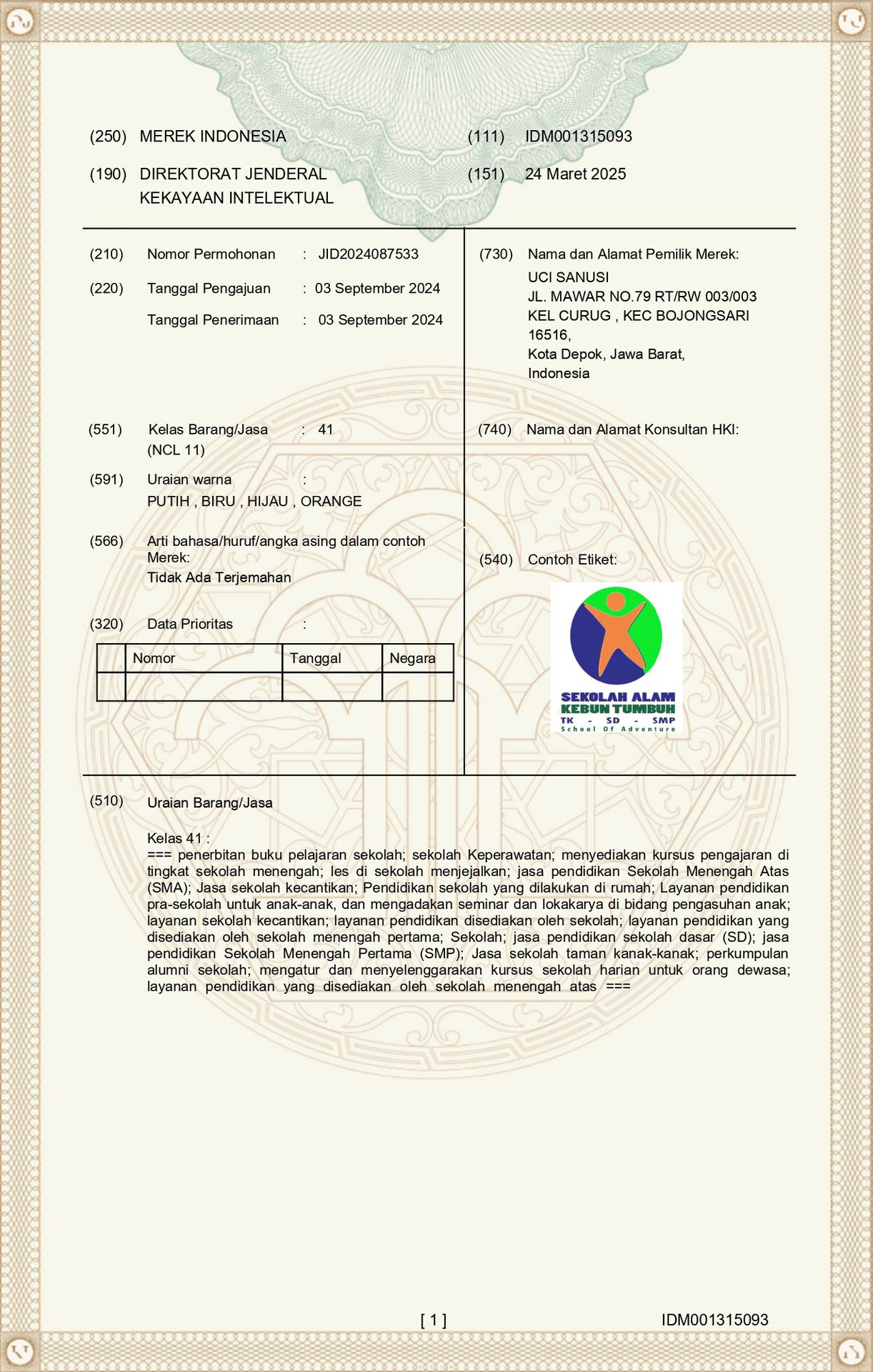 Nomor izin Operasional SMP : : 421.3/0042/DPMPTSP/VII/2024 ( SMP Sekolah Alam Kebun Tumbuh )